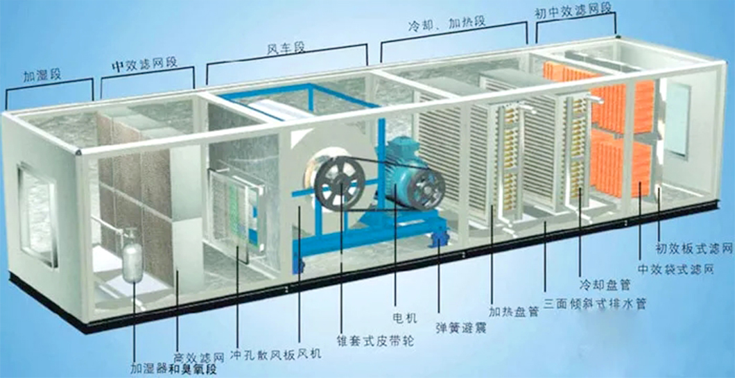 本段起過渡段的(de)連接和(hé)機(jī)組內(nèi)部檢修照(z £hào)明(míng)用(yòng)。在過濾段前,表冷(l™★ěng)段、加熱(rè)段、消聲段前後均須設中間(®¥←jiān)段.